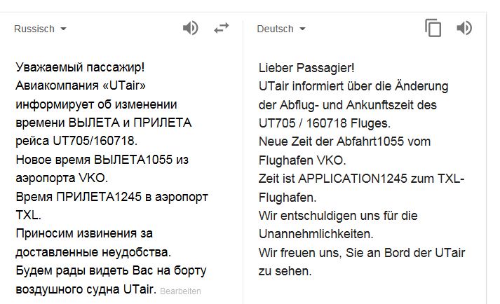 Mein Flug wurde GANZE 10min vor verlegt von Moskau nach Nowgorod. Die haben mich sogar angerufen und ne Mail geschrieben. Vorbildlich!Das würde ich mir aber nicht gefallen lassen.