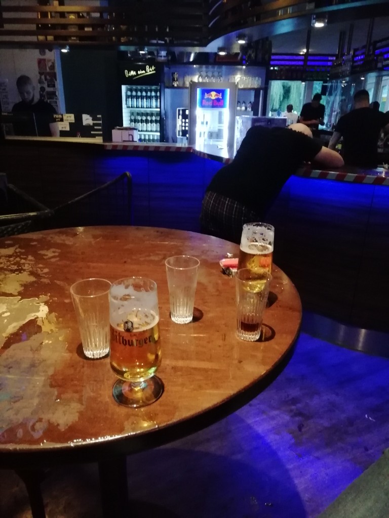 Dann bin ich schon im Stadion. Leider habe ich, aufgrund meiner Karte auf der Westtribüne, erst nach dem Spiel die Chance in die Kneipe zu kommen. Während des Spiel ist ein Zonenwechsel leider nicht möglich. Wo befindet sich dein Platz?