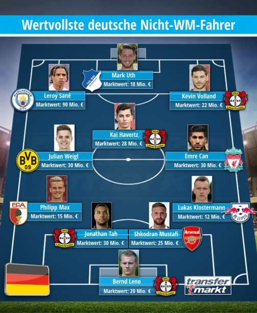 Klar ist aber auch, dass er auf eine ganze Menge an potentieller Qualität verzichtet. Und dass das nach hinten losgehen kann, wenn sich Reus und/oder ein anderer Offensiver am Anfang der WM verletzt und er dann tatsächlich auf Brandt angewiesen ist. Brandt ist sicherlich auch ein richtig guter Spieler, war aber zuletzt nur in einer sehr schwachen Bundesliga unterwegs, während Sane auf ganz hohem Niveau gefordert war.