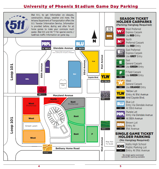 Soweit ich das verstanden habe, sind die Parkplätze am University of Phoenix Stadium nur für die Saison-Karten-Inhaber.