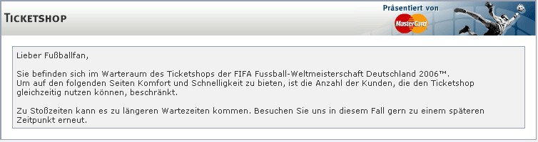 Ich bekomme teilweise die Warteraumseite nur zur Hälfte angezeigt, obwohl sie vollständig gelanden wurde. Beim einem der nächsten Refreshs ist sie dann wieder normal. Tritt das bei euch auch auf ? Hat das was zu bedeuten ?nein, das hat nichts zu bedeuten, ist eine der drei Möglichkeiten