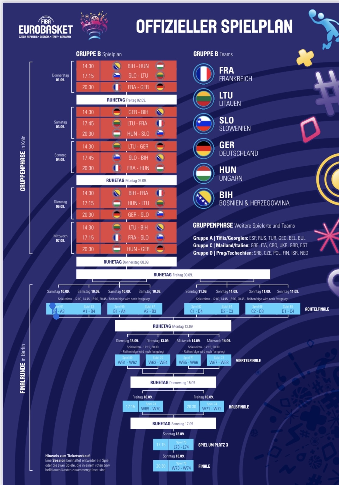 Deutschland ist in einer schweren Gruppe mit Frankreich und Slowenien, welche beide in Tokio sehr gut gespielt haben. Dazu ist auch noch Litauen nicht zu unterschätzen, auch wenn sie in den letzten Jahren nicht so viel geholt haben. Ungarn und Bosnien u. Herzegowina sollten aber machbar sein.