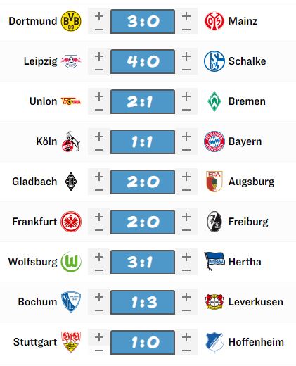 Glückwunsch Dortmund zur Meisterschaft. Mainz verliert gegen Stuttgart 1:4 zu Hause, klar die haben noch richtig Lust am letzten Spieltag :biggrin: . Dortmund heut alles andere als souverän gegen 10 schwache Augsburger aber am Ende wird es reichen :ciao: