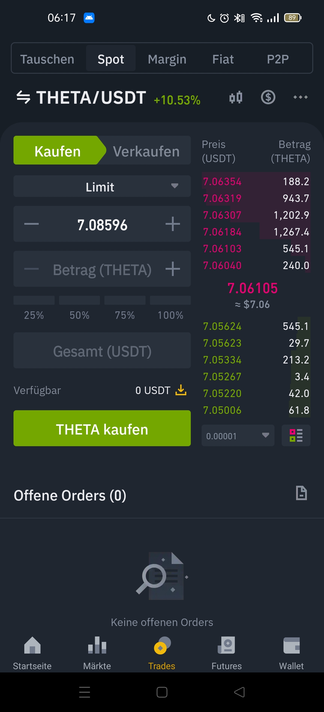 Ich glaube es gibt kein direktes Trading Paar Theta/USD bei Binance.