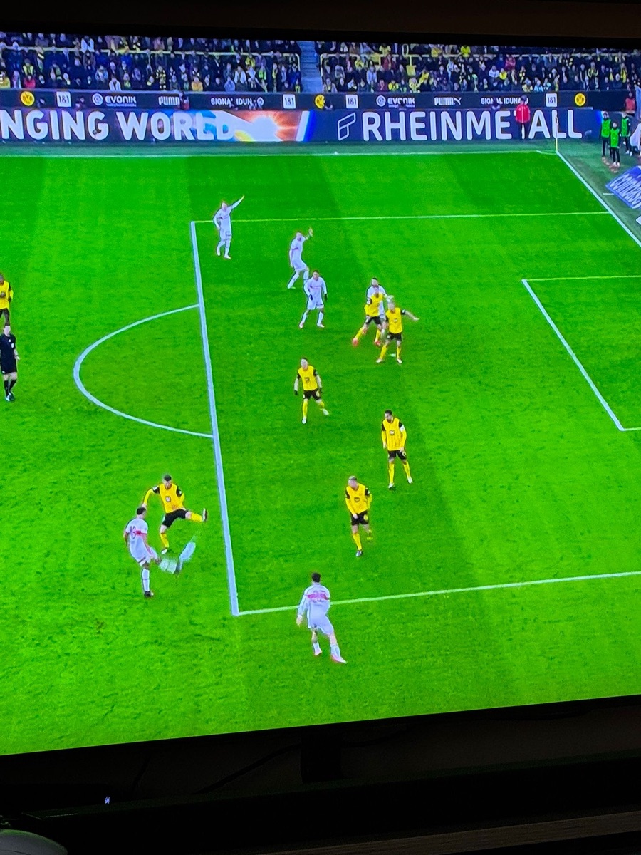Gegentore: 0:1 muss Anton rein in die Flanke, dumm gelaufen. Aber beim 0:2: Wo waren die Abwehrspieler? Zwischen Flankengeber und erstem Stuttgarter Spieler sind 6 Dortmunder, dann kommen 4 Stuttgarter. Problem an der Sache: Alle Dortmunder sind zwischen seitlicher Strafraumlinie und Elferpunkt. Die Stuttgarter stehen halt alle hinter dem Elferpunkt....