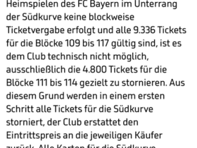 Bin mal gespannt, ob die Tickets in der Südkurve noch verkauft werden, oder ob der Verein die Sperrung eigenmächtig ausweitet. Falls ja, wird die Szene das nicht unkommentiert stehen lassen:gruebel: