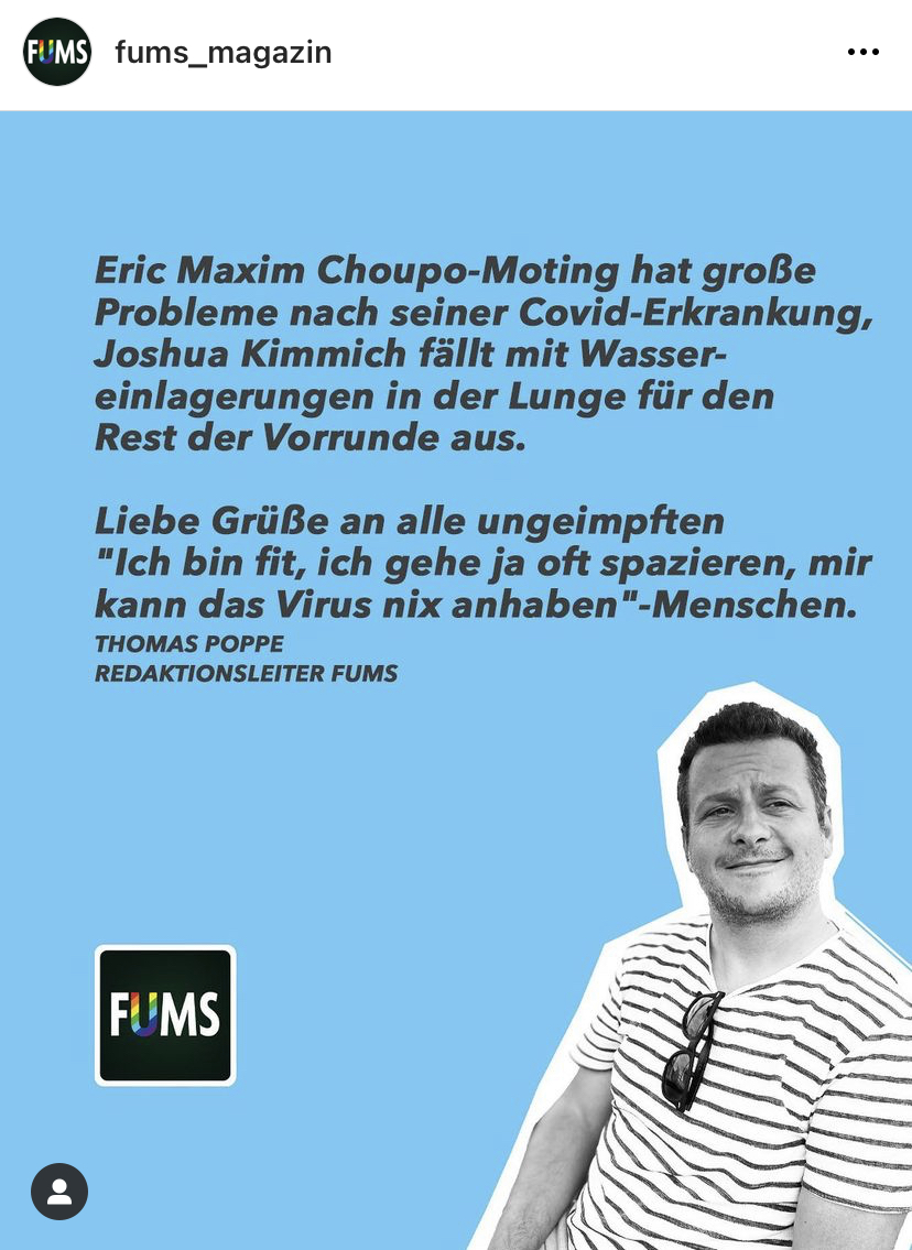 Man stelle sich mal vor, der Kimmich hätte nun die Größe und würde öffentlich über seinen Insta Kanal so etwas raushauen wie "Scheiße liebe Leute, ich habe die Gefahren von Corona für mich falsch eingeschätzt und habe den Fehler gemacht, mich nicht impfen zu lassen. Macht nicht den gleichen Fehler und lasst euch impfen".