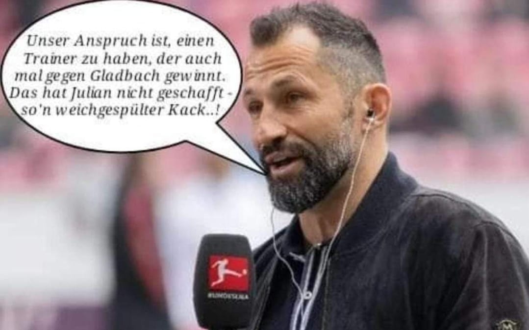 Kimmich, Müller und Neuer haben Ultimatum gesetzt? oder Nagelsmann ist mit Frau von Brazzo erwischt worden? oder Nagelsmann hat Knasti-Witz über Hoeneß erzählt? oder Nagelsmann hat bei den Spielern Kompetenz von Kahn in Frage gestellt? oder Nagelsmann hat immer noch nicht Schafkopfen gelernt?Egal, was hinter den Kulissen los war (und das wird für mich der Hauptgrund sein), ist es doch klar, dass ein freundlicher sportlicher 08/15-Text erstellt wird.