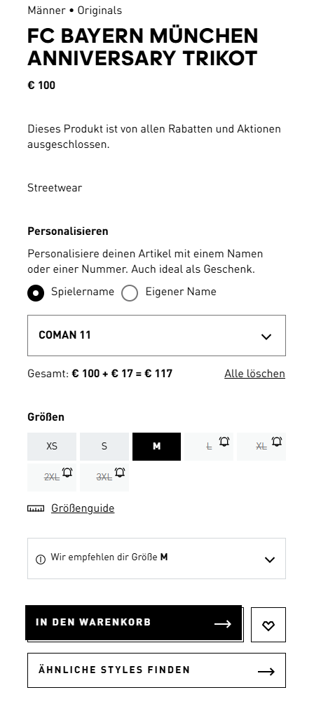 Bei mir ging es ebenfalls nicht bei Adidas. Aber wollte ich ohnehin so, 1x Kaiser war schon eingetütet vorher :huebscher: