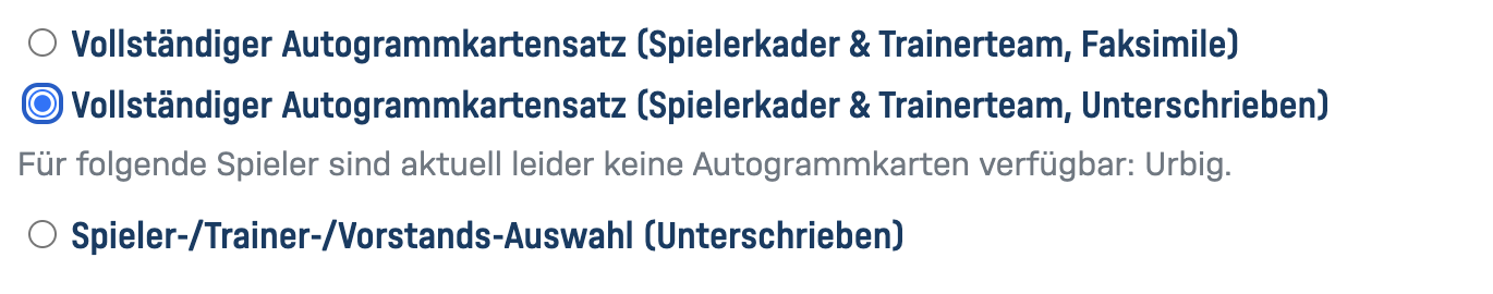 „Aktuell sind leider keine unterschriebenen Autogrammkarten verfügbar.“