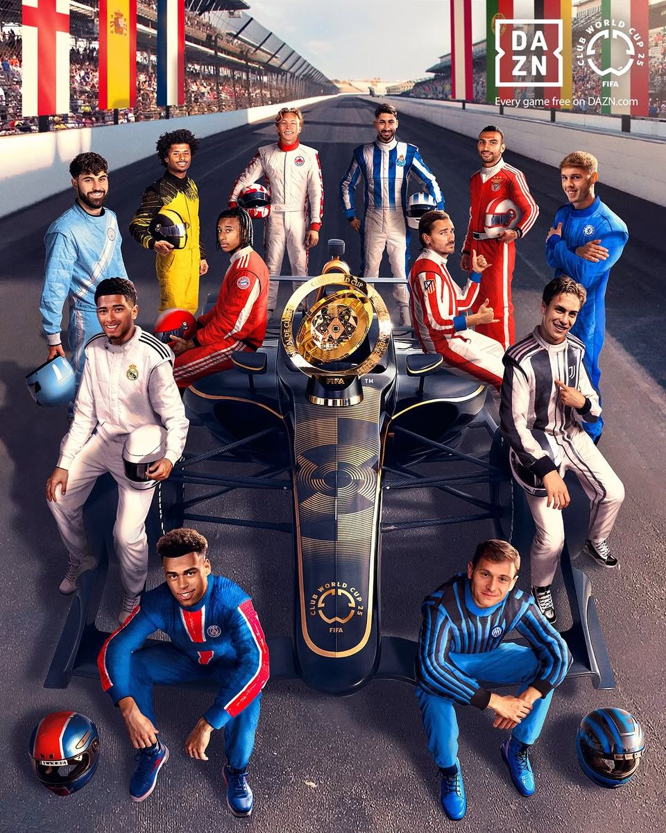 In einem Werbebild für die bevorstehende Klub-Weltmeisterschaft hat die FIFA versehentlich Designelemente von mehreren unveröffentlichten Saison-Kits für die Saison 2025/26 enthüllt. Während die Spieler nicht die eigentlichen Trikots tragen, bieten die Designs ihrer Rennkleidung starke visuelle Hinweise. Der rote Bayern-Rennanzug, den Olise trägt, scheint ein weißes vertikales Element zu zeigen, das in Richtung Mitte aufbricht und das Design widerspiegelt, das in Lecks zu sehen ist [@Footy_Headlins)