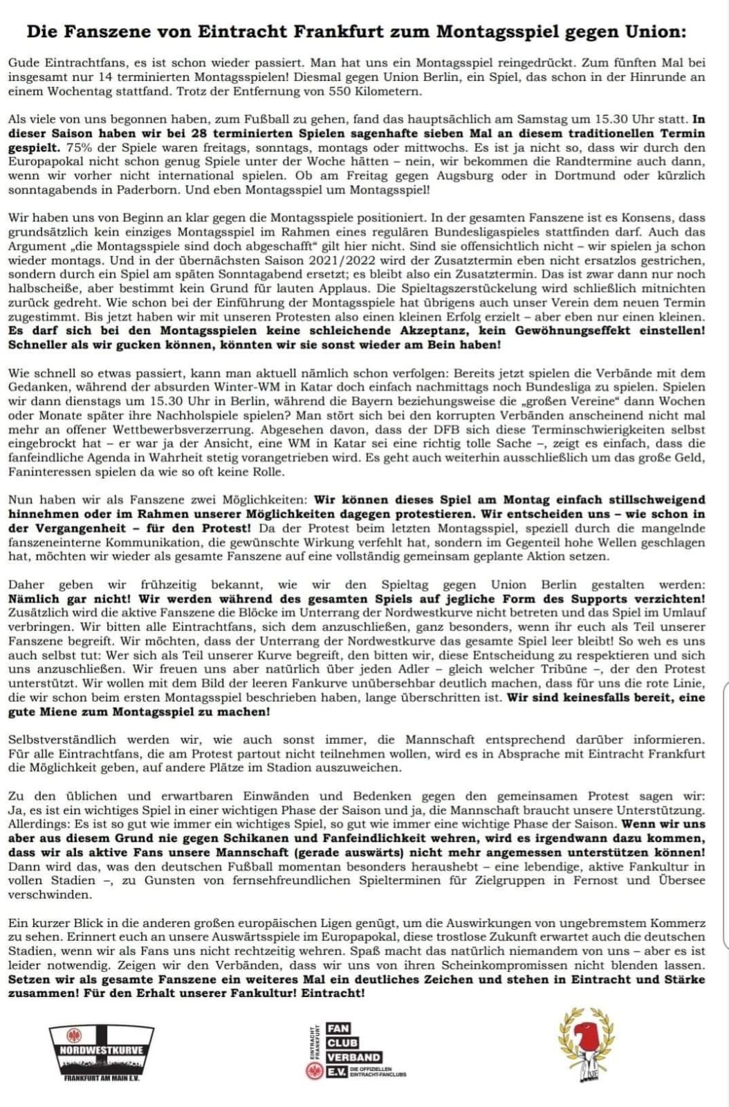 Boykott vom Montagsspiel gegen Union angekündigt: