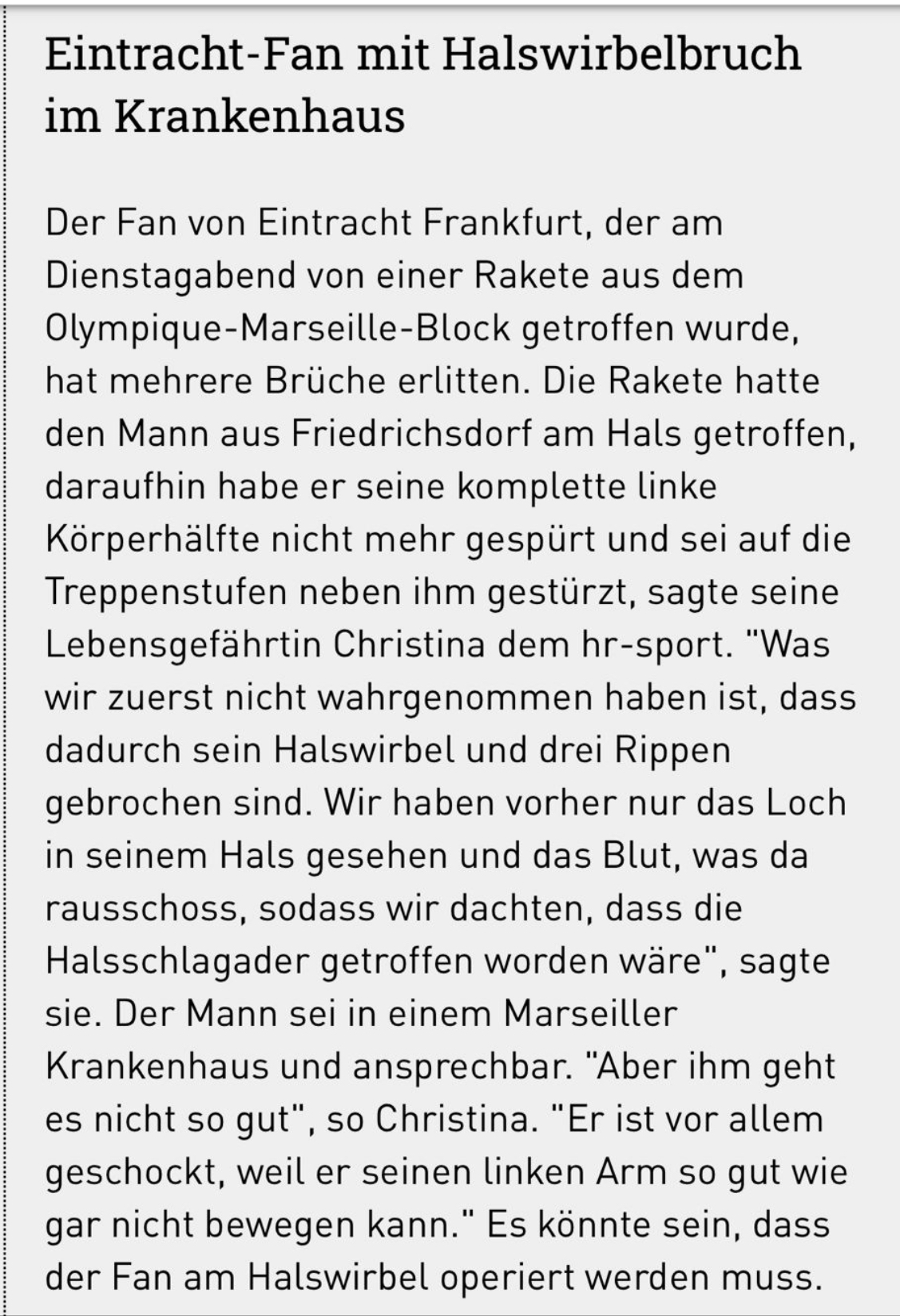 Also ich war schon sehr viel unterwegs, aber das gestern habe ich noch nicht erlebt. Normal sage ich, ich fahre mit der SGE überall hin, auch wenn es das vierte mal London ist. Aber nach Marseille komme ich nicht mehr. Das hatte nichts mehr mit Fußball zu tun.