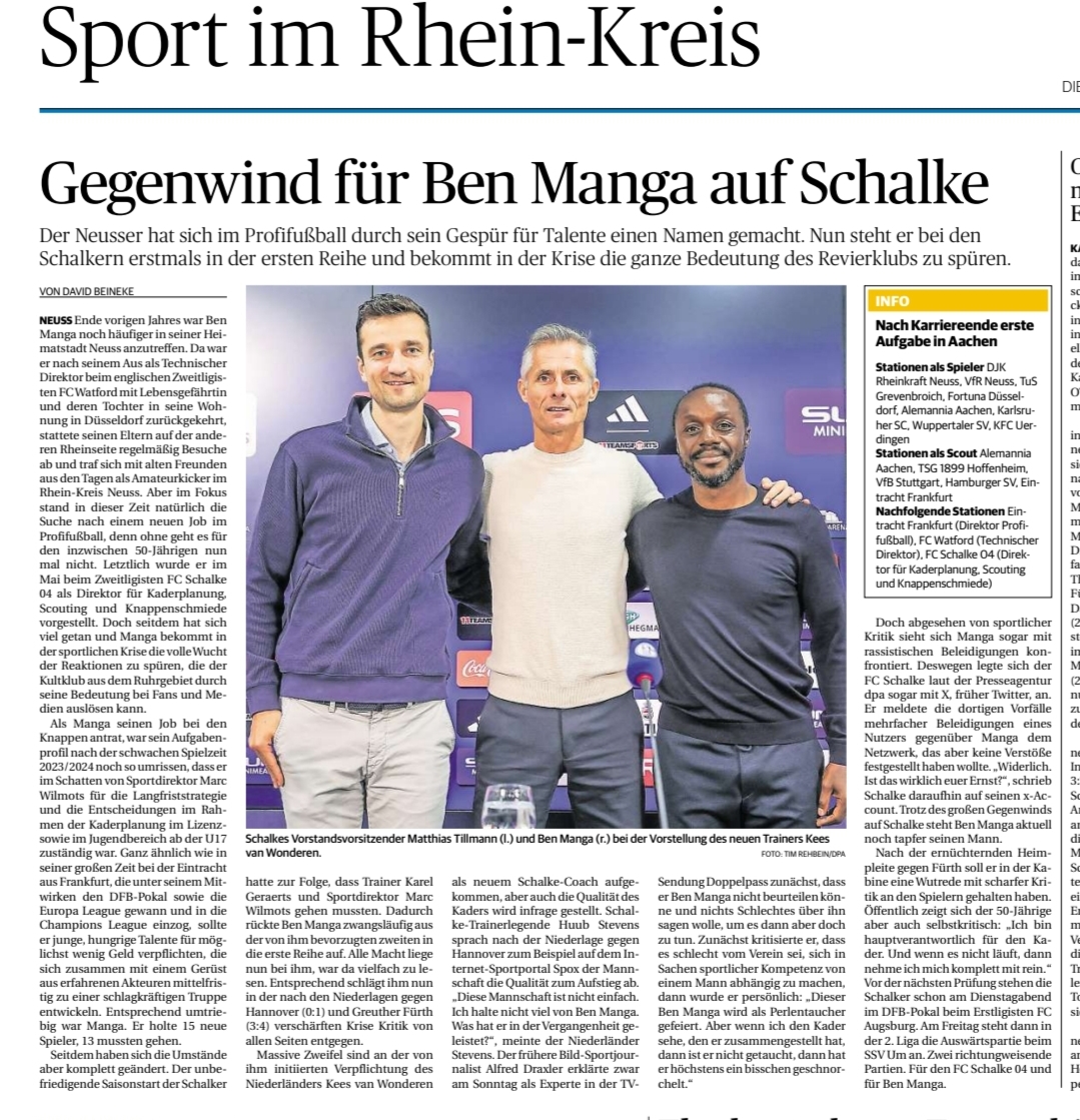 Gegenwind für Ben Manga auf SchalkeDer Neusser hat sich im Profifußball durch sein Gespür für Talente einen Namen gemacht. Nun steht er bei den Schalkern erstmals in der ersten Reihe und bekommt…rp-epaper.s4p-iapps.com