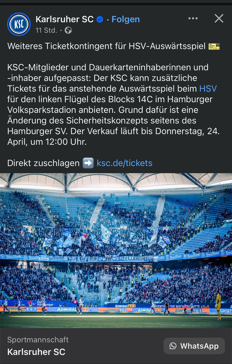 In der Saison 22/23 hat Karlsruhe insgesamt 1383 und 23/24 1870 Tickets für das Spiel beim HSV verkauft. Der KSC wollte auf Abendblatt-Nachfrage keine Stellungnahme abgeben. [ ]
