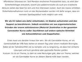Einige mehr oder weniger wichtige Ultrasgruppen beiben dem EL Heimspiel gegen Maccabi Tel Aviv komplett fern. Das CC97 supportet, aber ohne Material. Es wird also besonders sein morgen.
