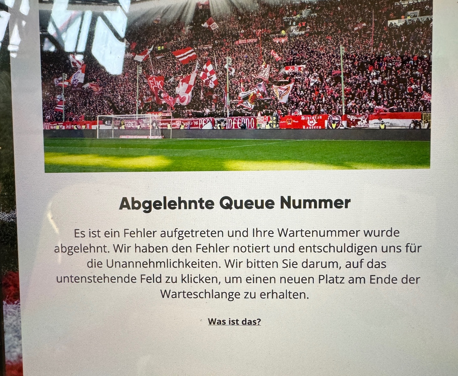 Morgen startet ja der VVK für das Spiel in Kiel. Da könnte man testen, ob mehrere Geräte/Tabs noch was bringen oder ob man besser bei einem bleiben sollte.