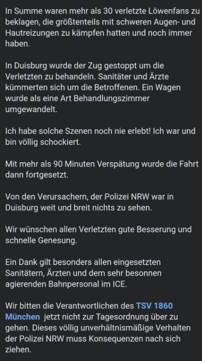 Wahnsinn, was da wieder am Bahnhof abging. Bei solchen Vorfällen mit mehreren Verletzten wird die Freude über die drei Punkte doch ziemlich getrübt.