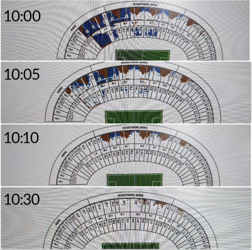 „Insgesamt passen 74.244 Zuschauer in die Arena, 15.000 Plätze bleiben leer, um genügend Abstand zwischen den Fangruppen zu wahren. Das Stadion gilt aber trotzdem nicht als ausverkauft.