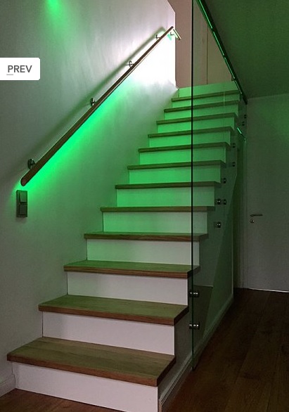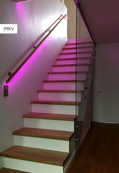 Ich habe mich etwas mit dem Thema beschäftigt und das ist echt irre, was man da alles machen kann. Die Treppe, die Scheibe und den Handlauf hat mir eine Firma installiert, die LEDs habe ich vor Endinstallation selbst verbaut. Ist wirklich gut geworden.