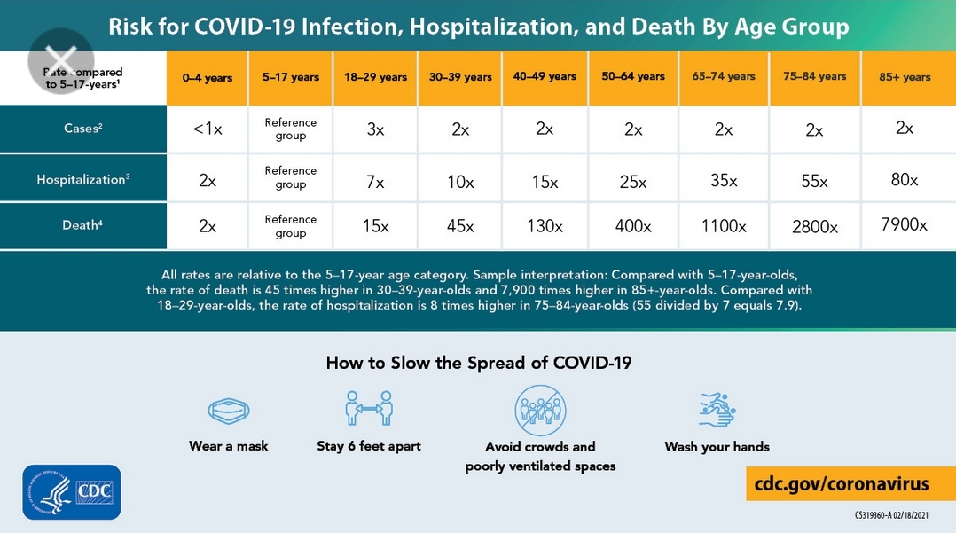 Insbesondere z.B. wie die allgemeine Infektionsgefahr und / oder die Risiken für einen schweren oder gar tödlichen Verlauf nach Altersgruppen mit und ohne vollständiger Impfung bei Varianten X & Y aussehen.
