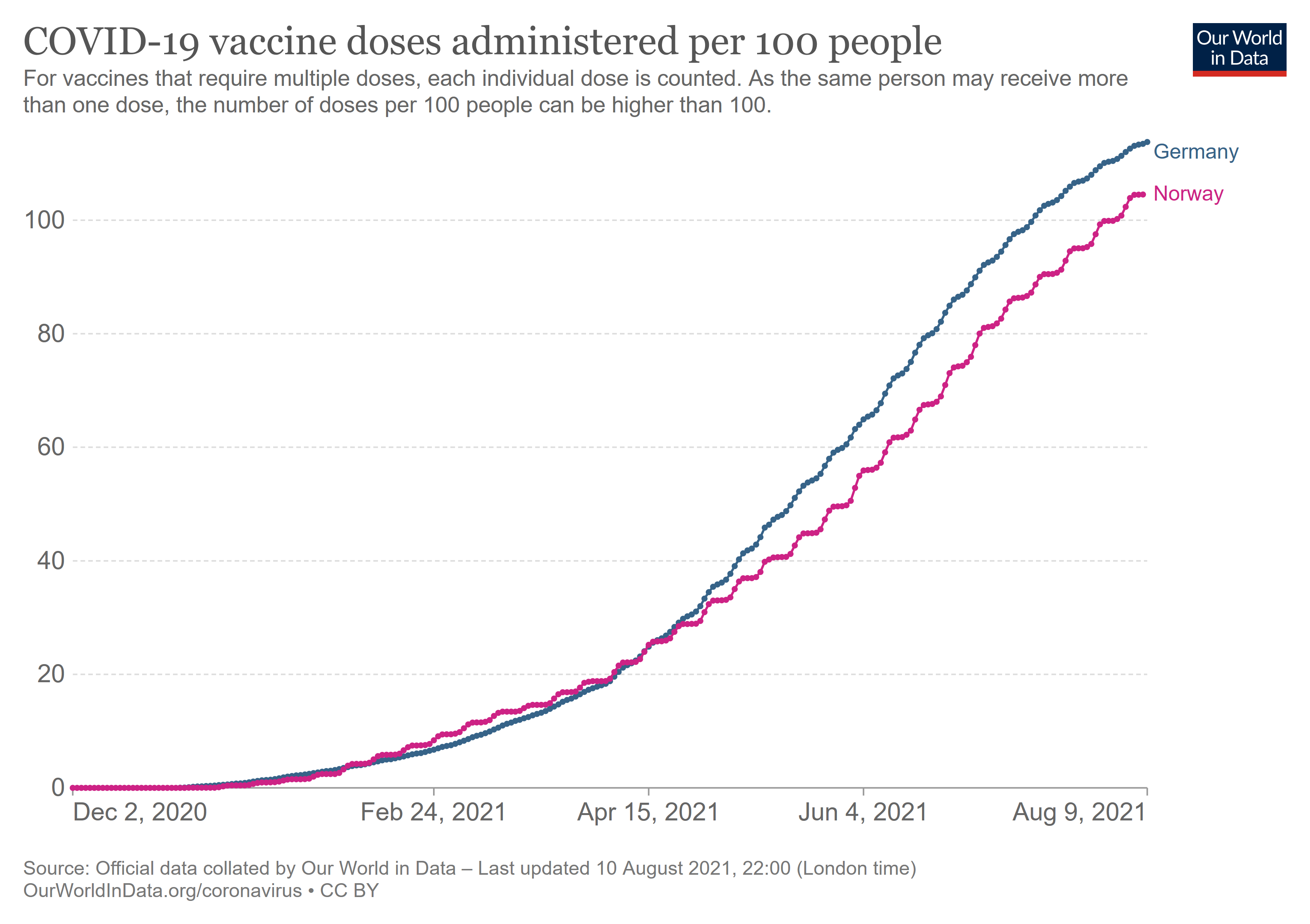 Norwegen hebt wohl Ende September ebenfalls sämtliche Beschränkungen auf. Einfache Begründung: Jeder Erwachsene hatte die Möglichkeit, sich impfen zu lassen.