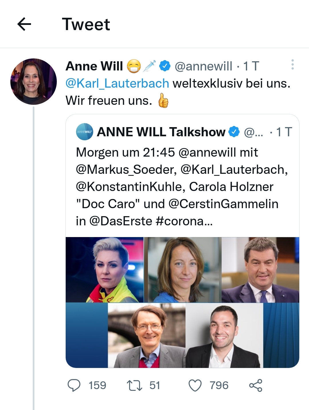 Karl Lauterbach weltexklusiv bei Anne Will. :atomrofl:
