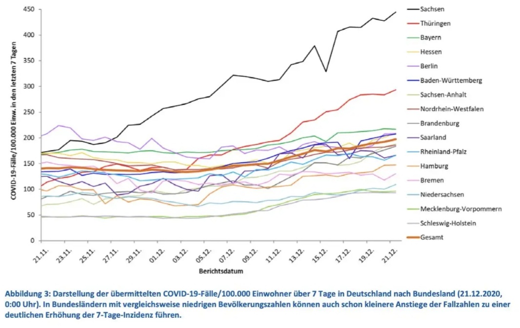 Die Fallzahlen waren eigentlich am Ende des Lockdowns light konstant, ehe neben den hohen und steigenden Zahlen in Sachsen auch die Fallzahlen in Thüringen Anfang Dezember explodierten.