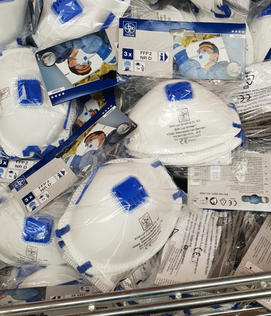 Ich habe noch ca. 40 Masken Typ 2 , 4 Stck. hat mir mein Zahnarzt abgerungen . Ich brauche pro Woche in der Firma 3-4 Stck. , d.h. wenn ich in 10 Wochen keine neuen habe , kann ich für die Schleifer Kurzarbeit beantragen .