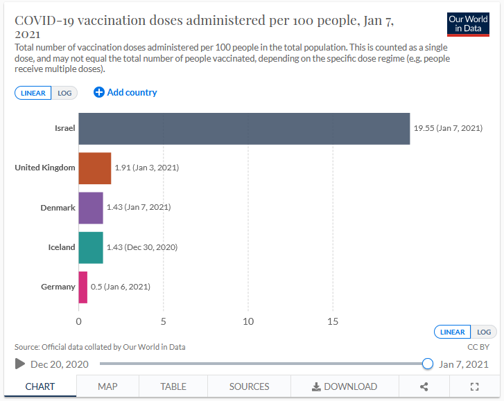 Dass Israel in den absoluten Zahlen pro Tag (bei ca. 12% Bevölkerungsgröße) deutlich vor Deutschland liegt, darf man dennoch kritisch anmerken