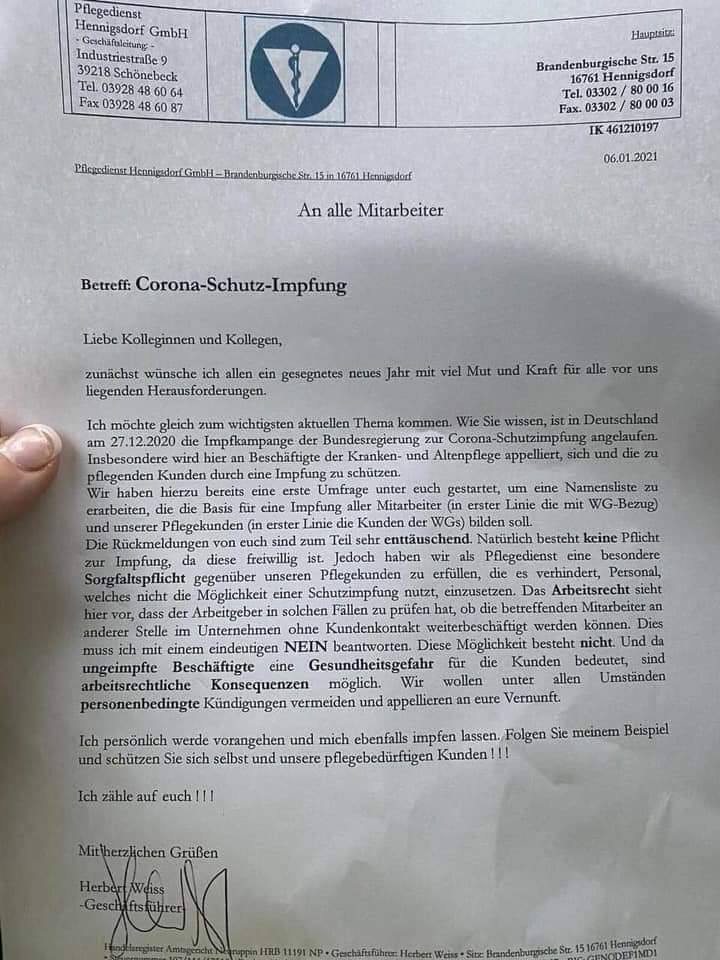 (Fürs Protokoll: Ich bin nicht für eine Impfpflicht, sondern für konsequentes Aufklären und Erklären. Fürs Pflegepersonal dann halt sonst Pflicht für tägliche Schnelltests, wer die verweigert dienstrechtliche Maßnahmen)