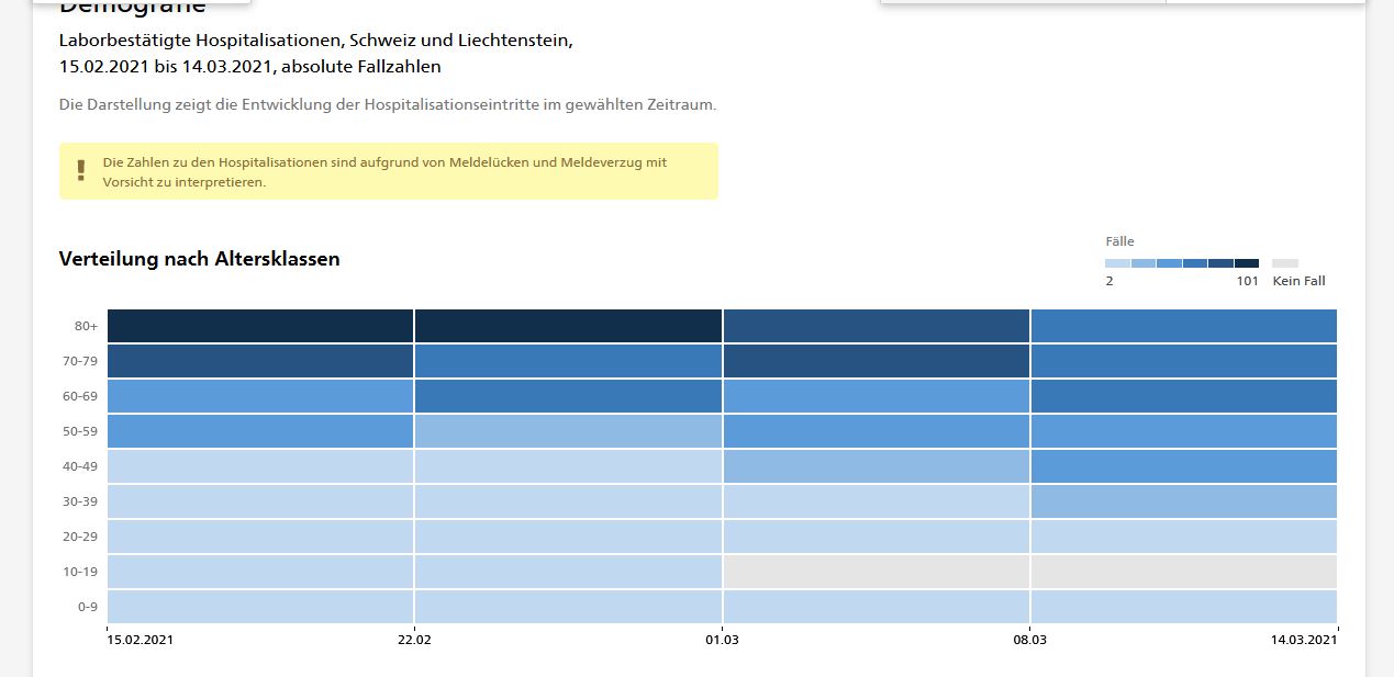 Ja, es stimmt, in den letzten Wochen sind bei den jüngeren (40 - 70) die Einweisungen leicht angestiegen und bei den ältern (ü70) gesunken. Sagt aber nichts über die Belegung auf der Intensiv aus.
