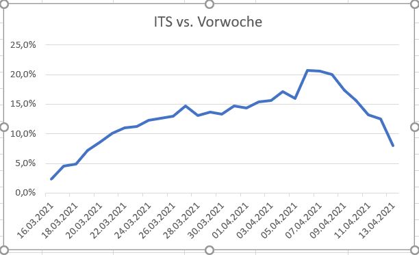 Entwicklung ITS-Zahlen vs. Vorwoche seit erneuertem Anstieg in der 3. Welle: