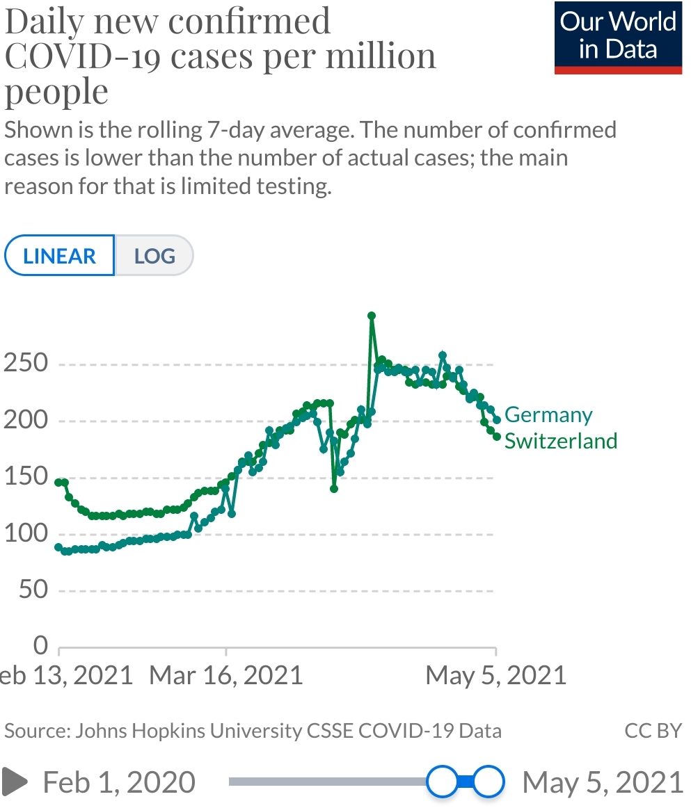 Aber die Maßnahmen waren sehr unterschiedlich, Österreich mit drei (harten) Lockdowns, teilweise Ausgangssperren.