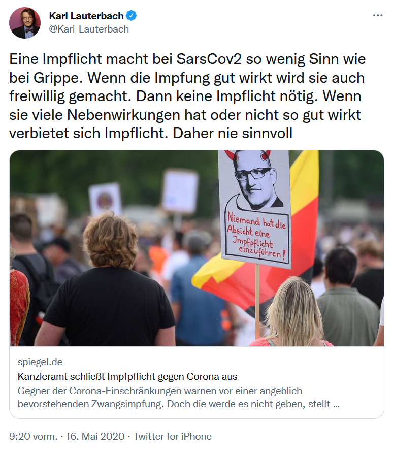 Ja, jeder junge (wo auch immer man das definiert) Tod ist bedauerlich und ich will hier genau wie du auch keine Long-Covid-Folgen verharmlosen. Aber die entscheidenden Hebel liegen doch nun - meiner Meinung nach - wirklich nicht in einer allgemeinen Impfpflicht für jedermann, Impfpflicht für Profifußballer, darin, dass man die Kinder wieder aus den Schulen nach Hause holt oder die Restaurants um 20 Uhr dicht macht.
