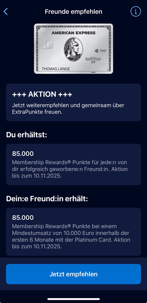 Neuer Rekord (glaub ich): 85.000 Punkte für Werber und Geworbenen für die private Platinum.