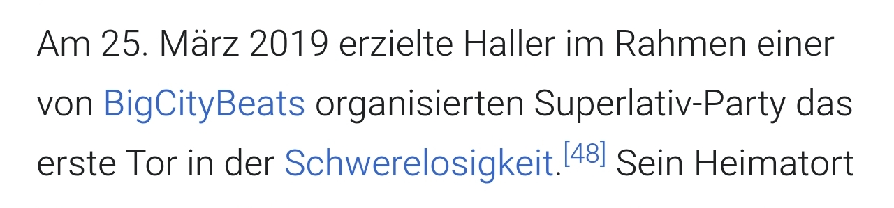 Also jetzt wo du Holland sagst - hat nicht Haller mal für Ajax so eine Mega Vorrunde gespielt? Aber was das mit der Schwerelosigkeit sein soll…?