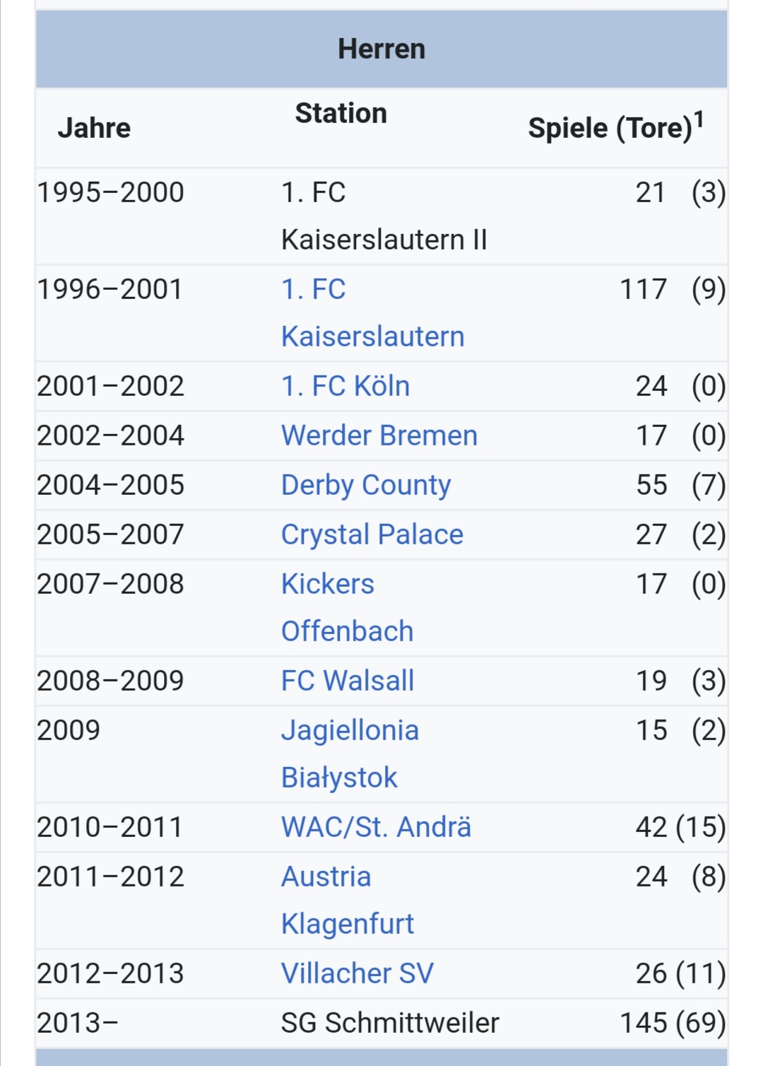 Das sind seine Spielerstationen gewesen: