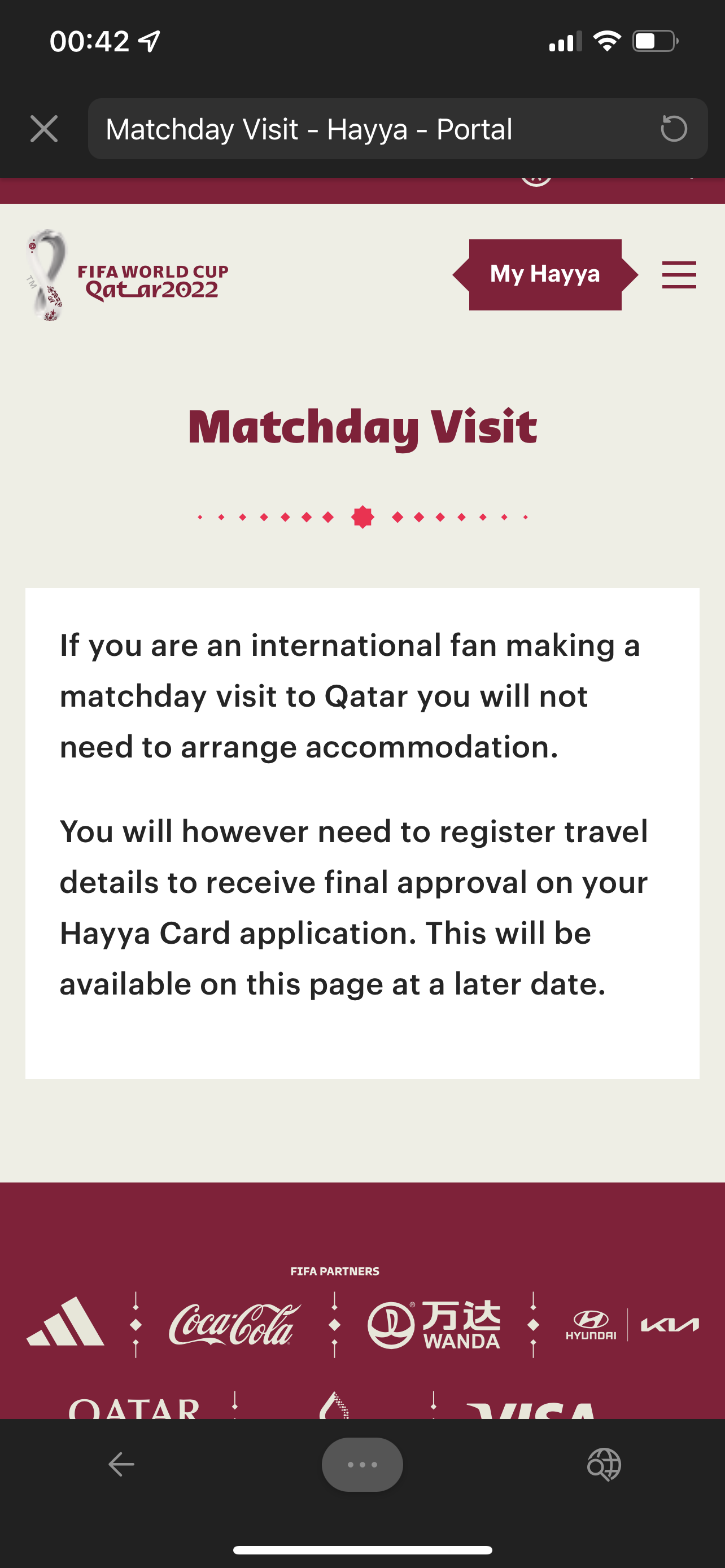 Please check your Hayya Card dashboard for accommodation confirmation updates from time to time and feel free to check with us for any updates, should we have some, at any time.