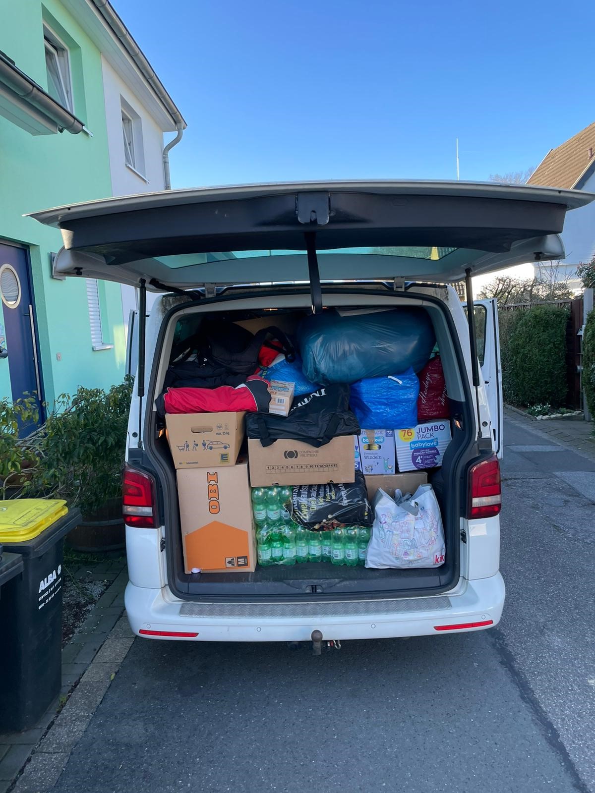 Ein Freund von mir ist gerade mit einem weiteren auf dem Weg nach Polen, Schwiegereltern von dem einen zu holen, die in der Ukraine leb(t)en. Hin sind sie auch voll beladen mit Spenden aus dem Kindergarten.