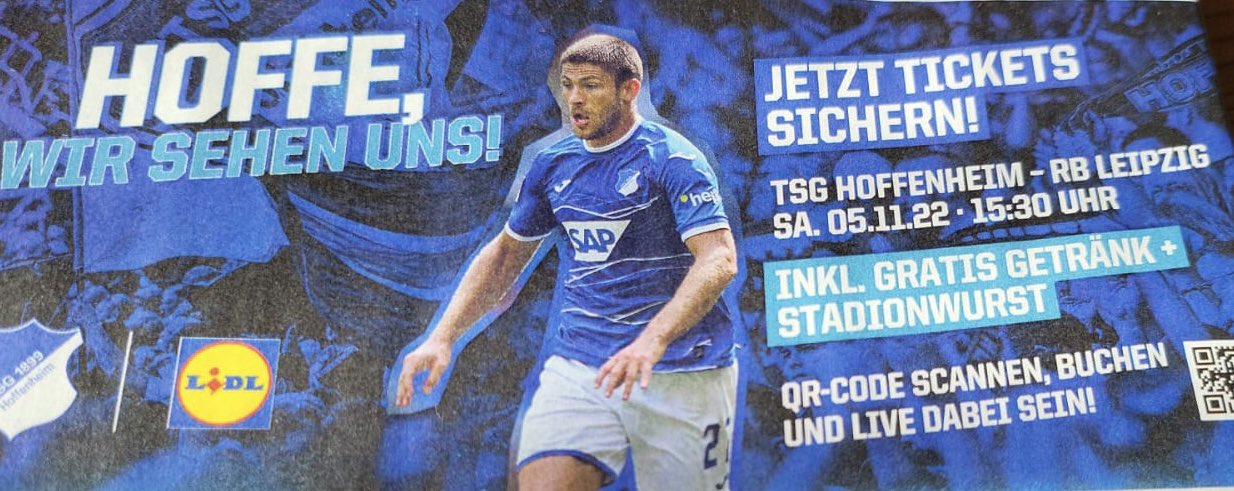 Wir könnten auch zu Hoffe gegen RB. Da gibt's Bier und Wurst Gratis.