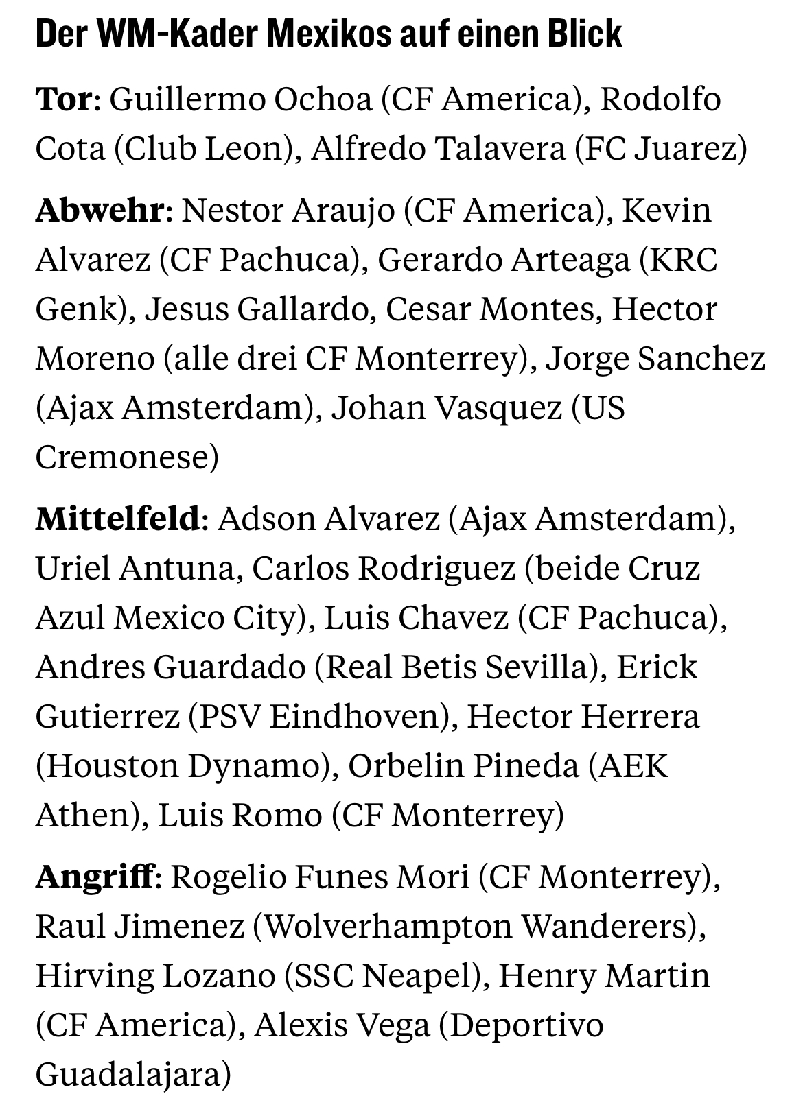 WM Aufgebot Mexiko