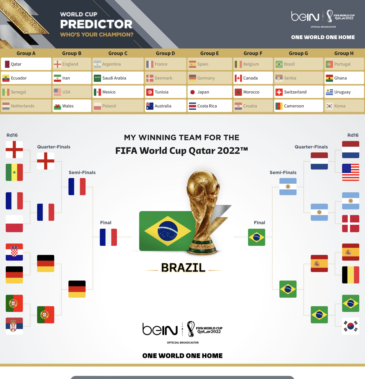 Insgesamt haben 44 tooorler ihren Bracket-Tipp fristgerecht eingereicht, dazu kommen die Gasttipps aus Oxford, von Samuel Eto'o sowie der Wunschzettel der FIFA (laut Pek).