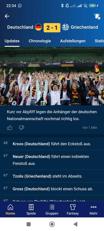 Und in der UEFA App die tooor Fahne perfekt in Szene gesetzt