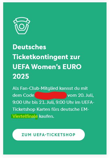 Wisst ihr, ob vom Fanclub Nationalmannschaft jetzt wieder eine Mail mit Code zum Ticketkauf fürs HF kommt?