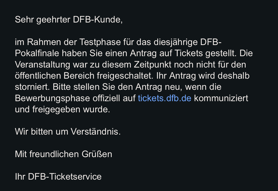 Anfragen für das Pokalfinale sind übrings schon möglich.