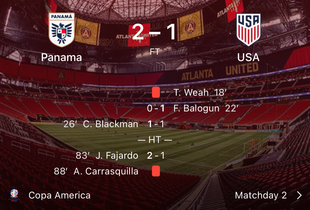 Statistiken halt nur so gut wie man sie sich zurecht legt. USA 6:2 und 5:1 Siege in den letzten 5 Spielen gegen Panama. Gerade im eigenen Land bei einem Turnier hatten sich die Amis hier mehr ausgerechnet. Rote Karte war ungünstig.