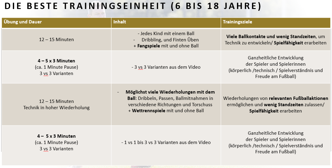 Bzgl. der Technikübungen hier mal exemplarisch eine Modelleinheit des DFB: