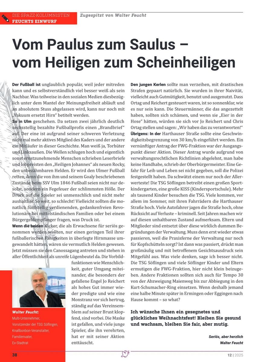 Reichert und Ortag, die beiden dienstältesten Ulmer, fordern vom Aufsichtsrat: „Darum bitten wir euch aus tiefstem Herzen: Handelt jetzt, bevor es zu spät ist. Wir brauchen im sportlichen Bereich einen kompletten Neuanfang, um überhaupt noch die kleine Chance auf den Klassenerhalt zu wahren.“