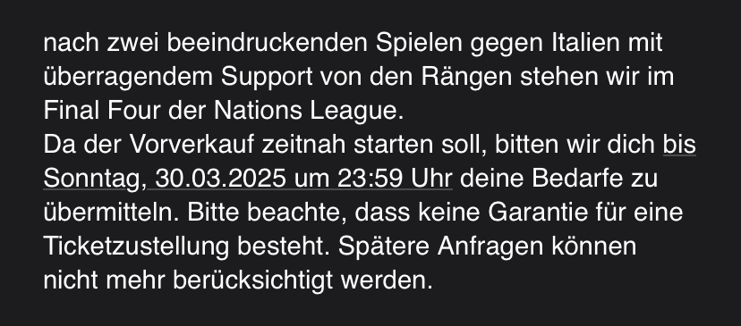Das war auch mein Gedanke. Klar, attraktive Gegner, Anfang Juni Biergartenwetter, neue Euphorie, die Welt zu Gast im schönen Bayern etc. Aber es ist ja eigentlich nur ein nebensächlicher Wettbewerb den vor zwei Wochen eigentlich kaum jemand interessiert hat. Aber tatsächlich hat mich ein Kumpel auch schon gefragt ob ich Tickets besorgen kann :huebscher::mrgreen: